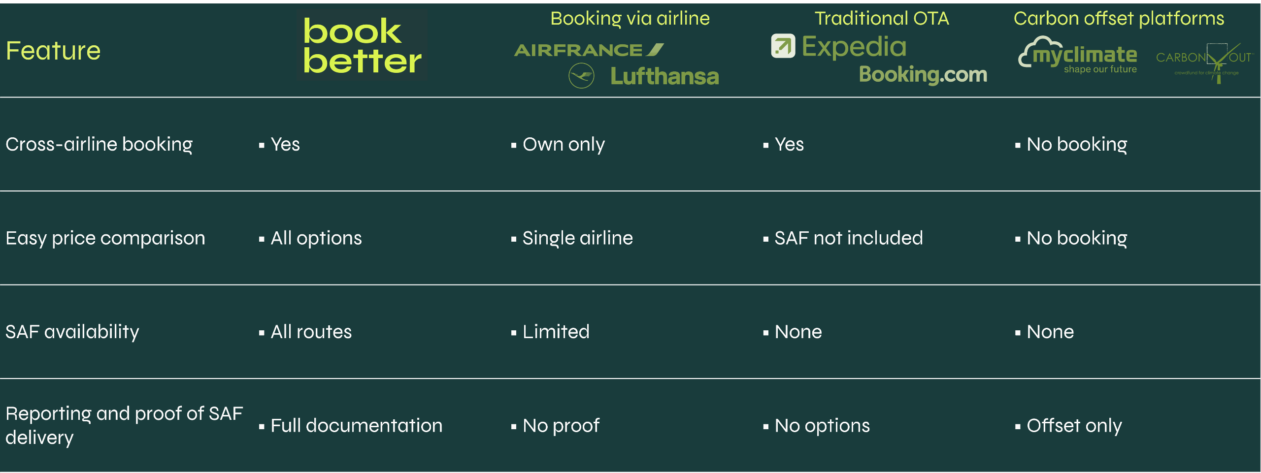 BookBetter makes it easy to compare and book the least polluting travel option